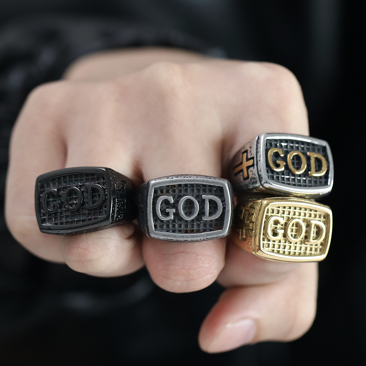 European and American AliExpress Hot Ring Punk Hip Hip Hop Street Men Retro GOD Stainless Steel Ring Factory Outlet