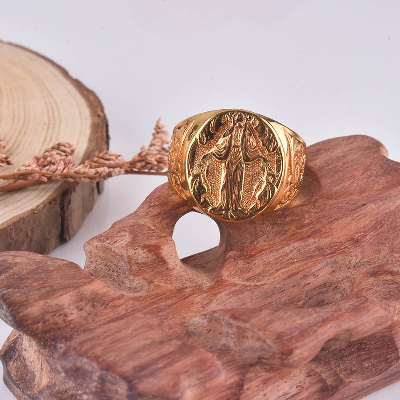 lkn elegant neutral plated 18K gold Virgin Mary blessing American badge hand carved religious ring