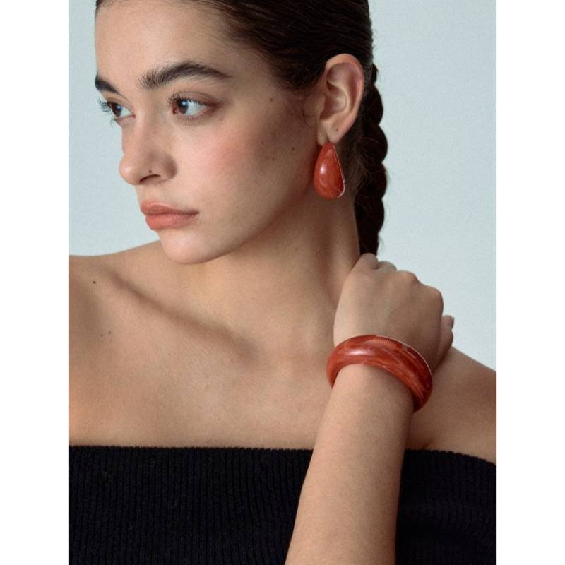 Wu Xin's Christmas Orange Acrylic Crescent Earrings Bracelet Niche Design Simple Advanced Ear Ring Bracelet