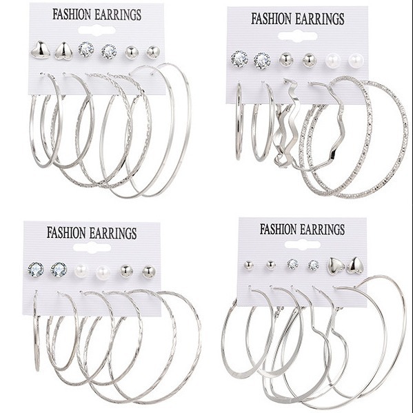 European and American cross-border fashion simple silver earrings suit women's elegant all-match personality exaggerated earrings high-grade jewelry