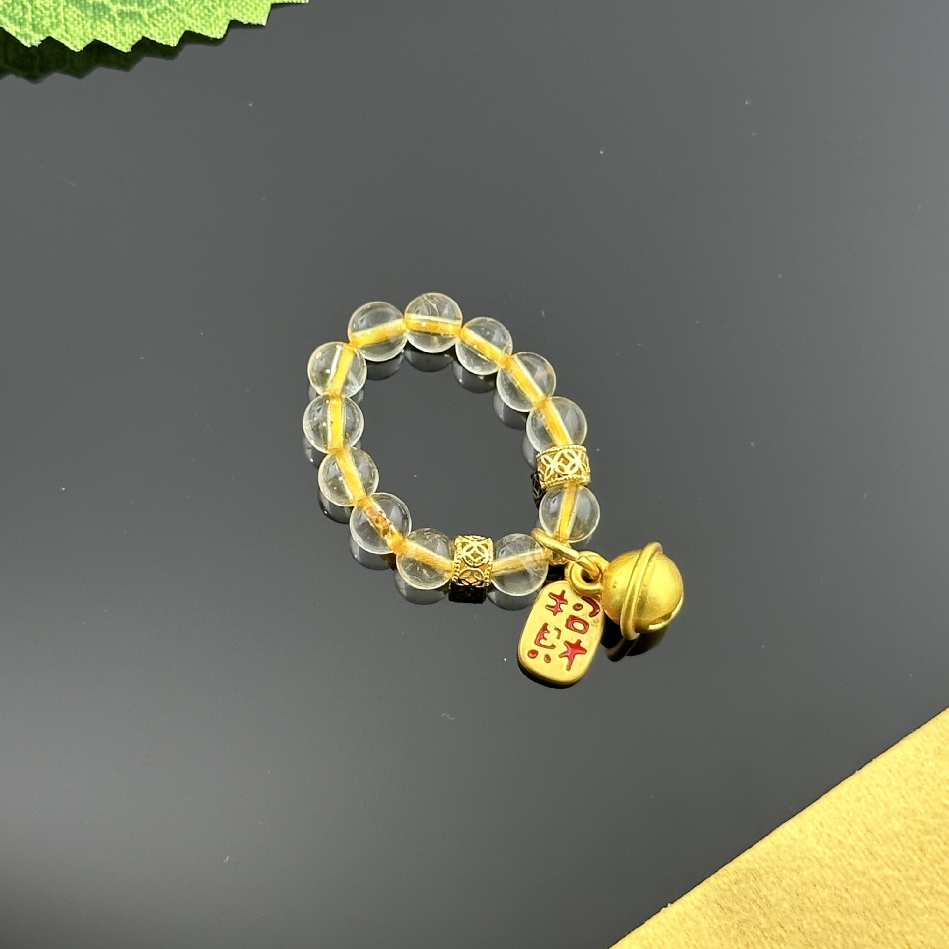 New Chinese-Style Citrine Fortune Bell, Niche Item, Elastic Cord Handmade Beaded Ring, Pearl Ring