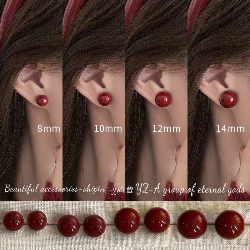 2024 Super Popular Autumn and Winter Ancora Red 925 Silver Needle Earrings Red Bean Pearl Earrings High-End Vintage Elegant Red