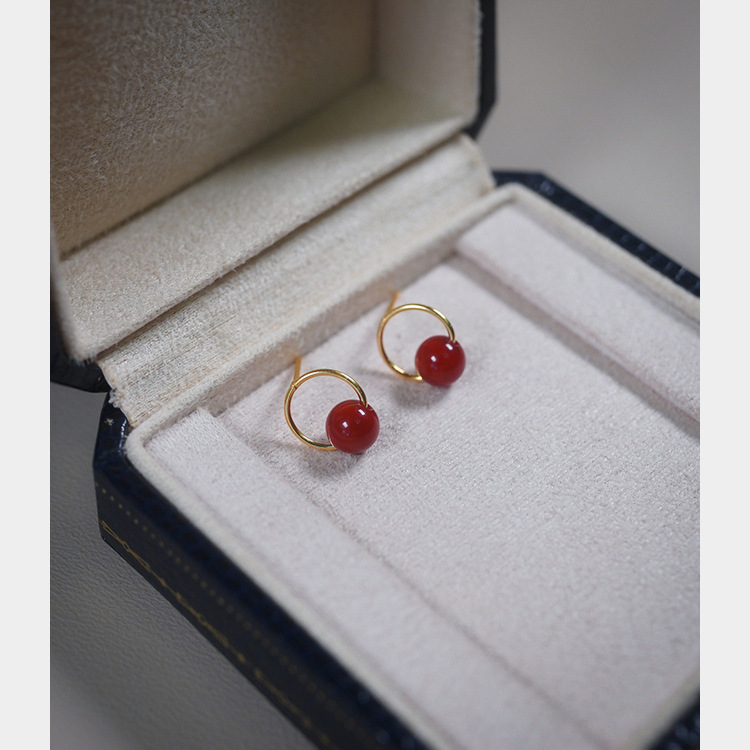Yeyuan Original Handmade Agate Circle Earrings 925 Silver Vintage Style Ear Piercing Earrings 30766