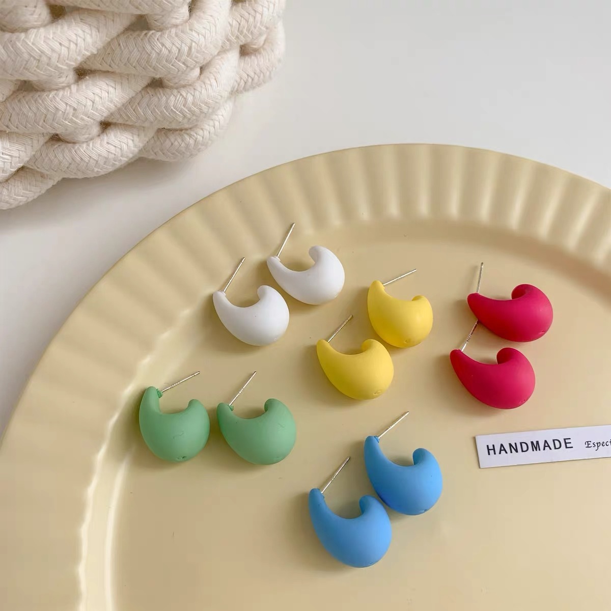 925 silver needle resin stud earrings South Korea cold wind spray leather earrings acrylic small simple temperament earrings for women