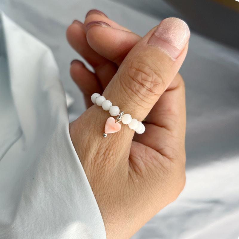 Rongshang Niche Heart Shell Ring Crystal Beaded Index Finger Ring for Women Cross-Border Hot-Selling Jewelry