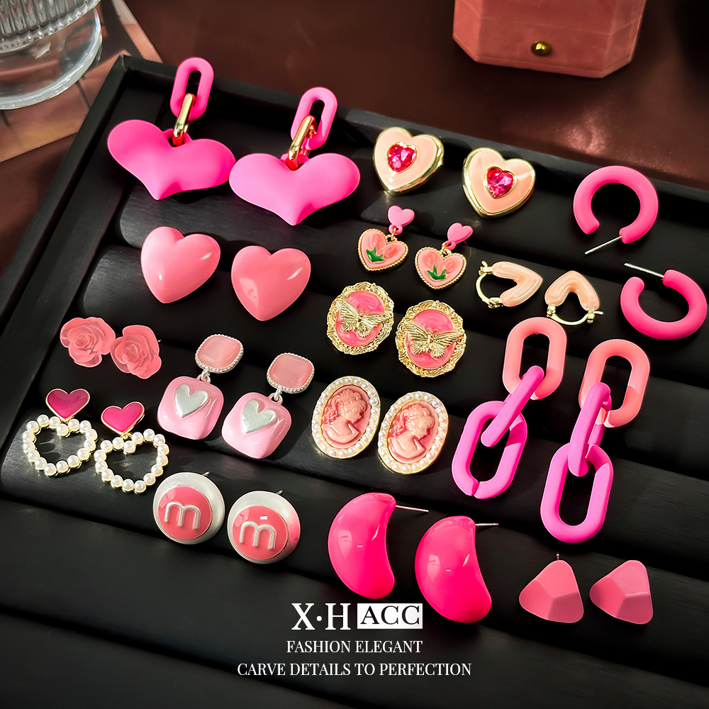 Sweet girl cute pink love earrings fashion personality heart-shaped earrings niche simple Joker earrings wholesale