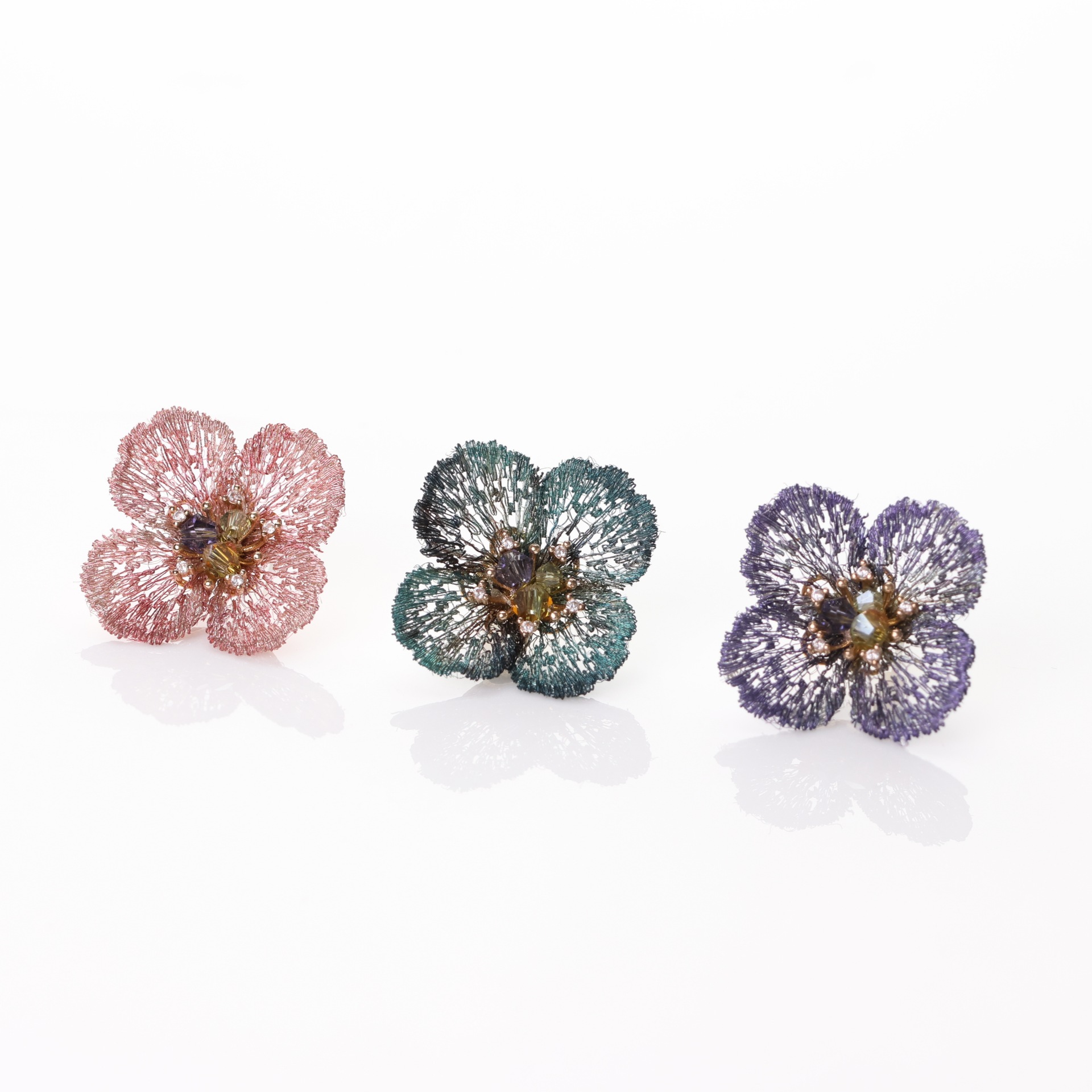French Retro Denim Camellia Rose Fabric Flower Handmade Flower Design High Temperament Earrings