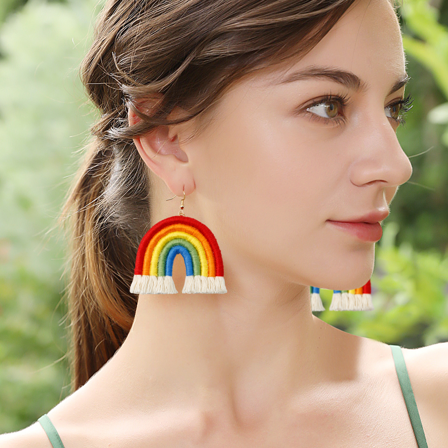 European and American Pastoral Bohemian Rainbow Earrings Handmade Woven Distinctive Exaggerated Niche INS Mori Earrings
