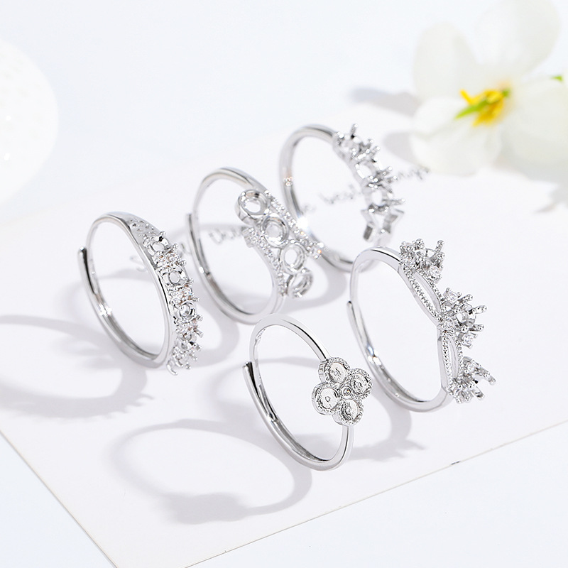 New S925 silver plated row ring empty support multi main stone open mouth female ring empty support diy inlaid dangerous material Chinese diamond