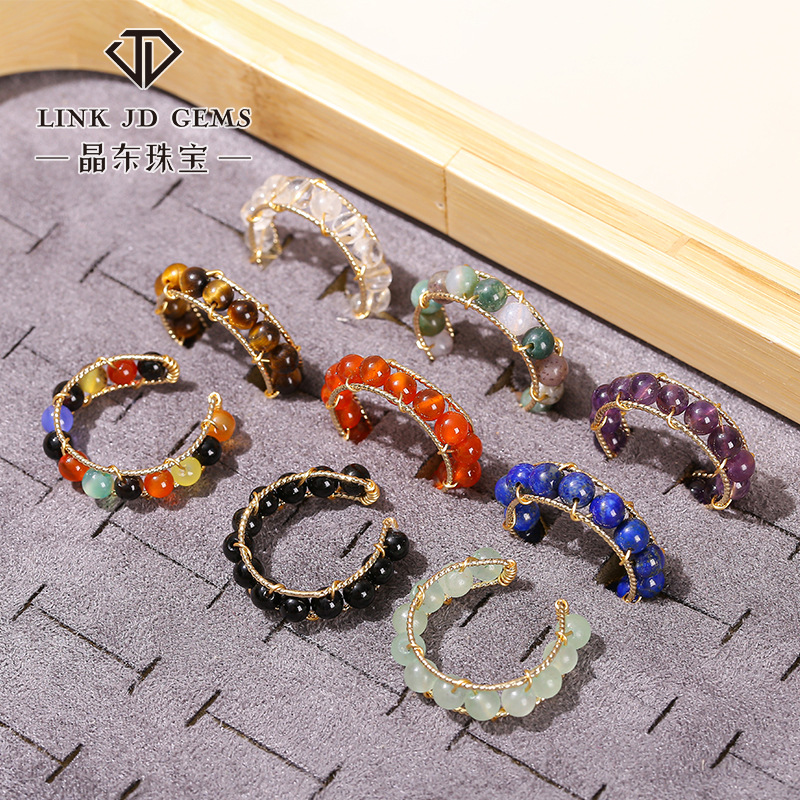 Jingdong Jewelry Crystal Jade Beads Open Ring Girls Niche Design Summer Joker Ring Wholesale