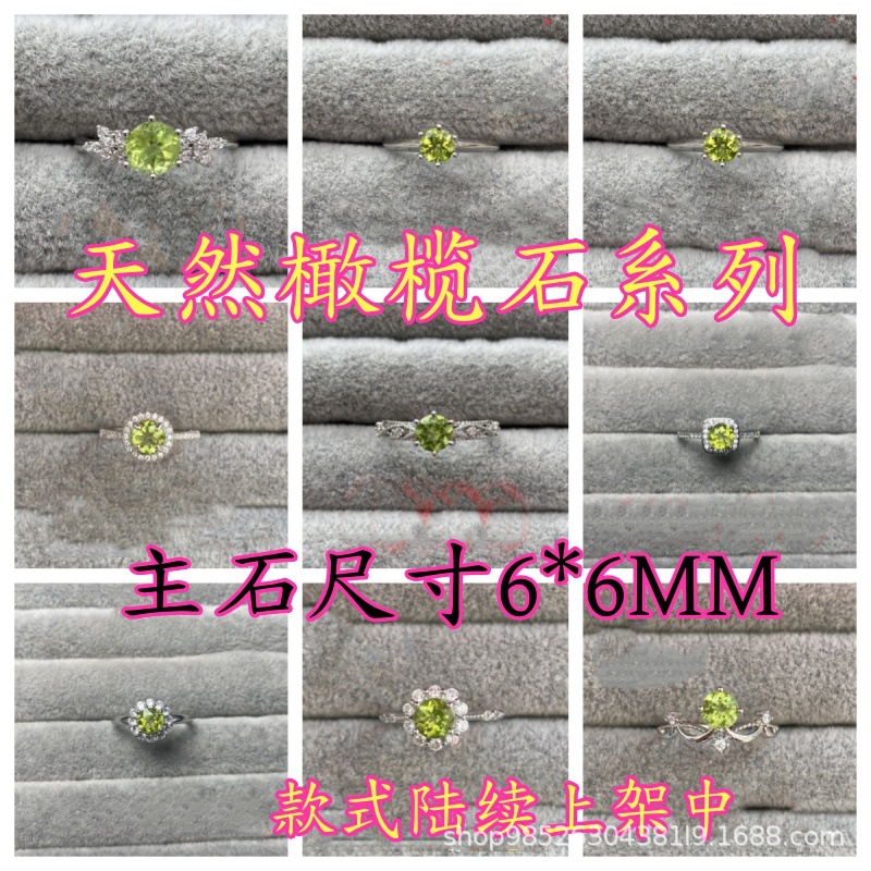 Natural olivine ring 6*6M hand-inlaid cut crystal color treasure live small red book live factory supply