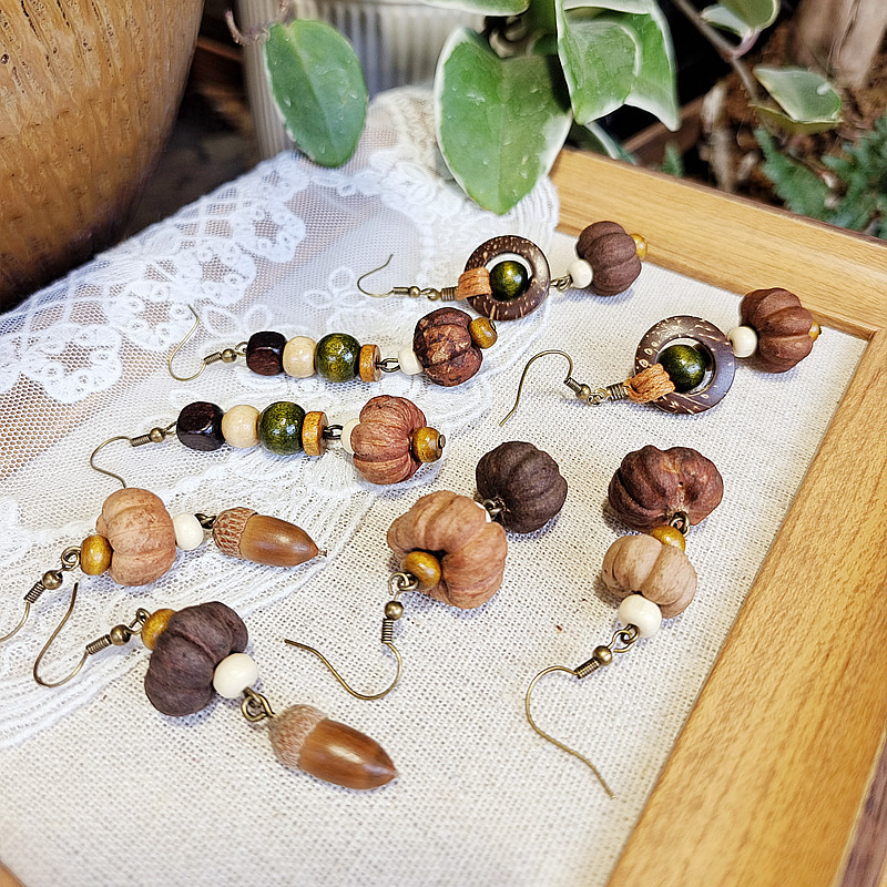 Handmade Design Vintage Mori Dried Fruit Niche Elegant Small Pumpkin Earrings Women's Wooden Bohemian Exaggerated Earrings
