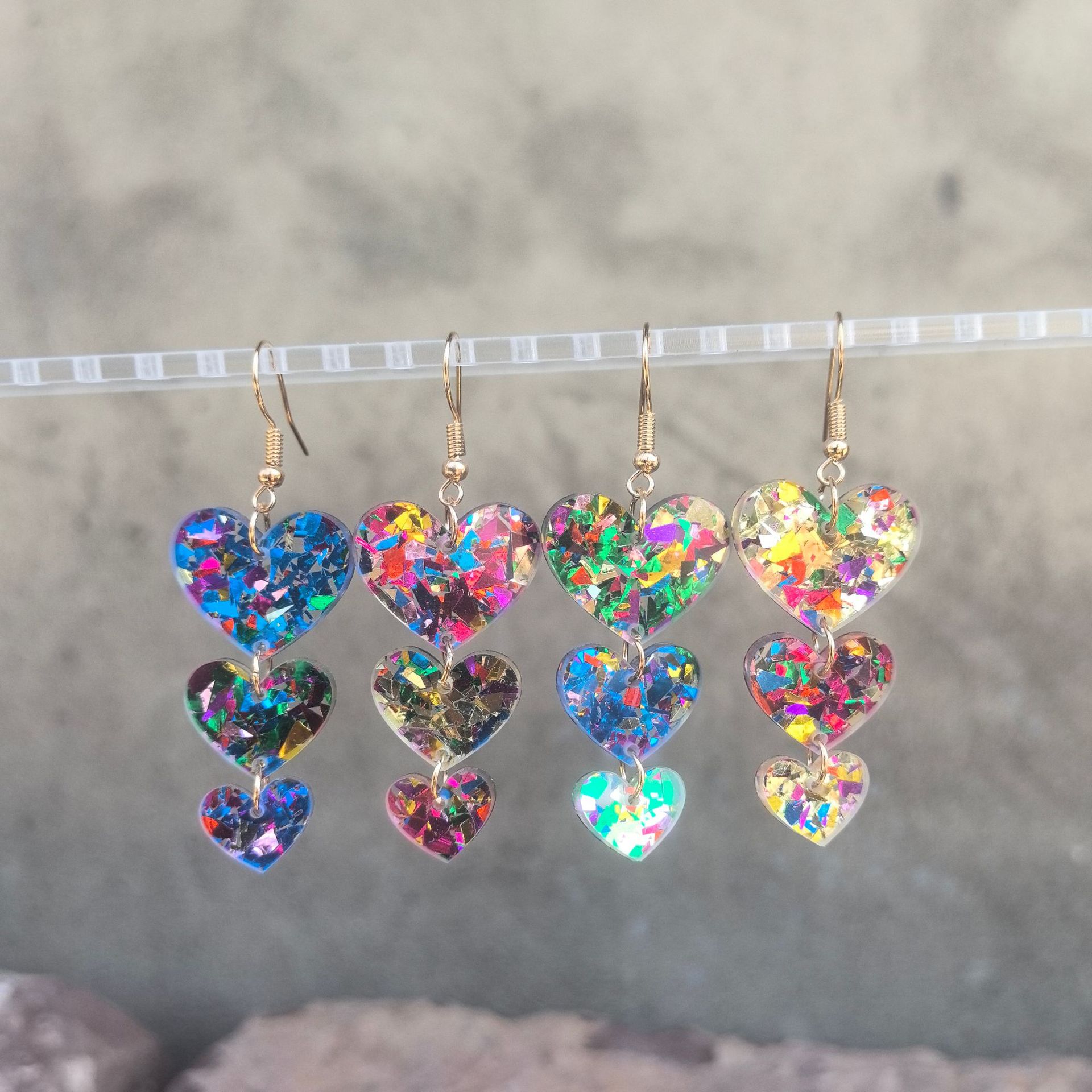 Cross-border European and American acrylic sequins asymmetric heart-shaped triple love personality simple retro earrings earrings color