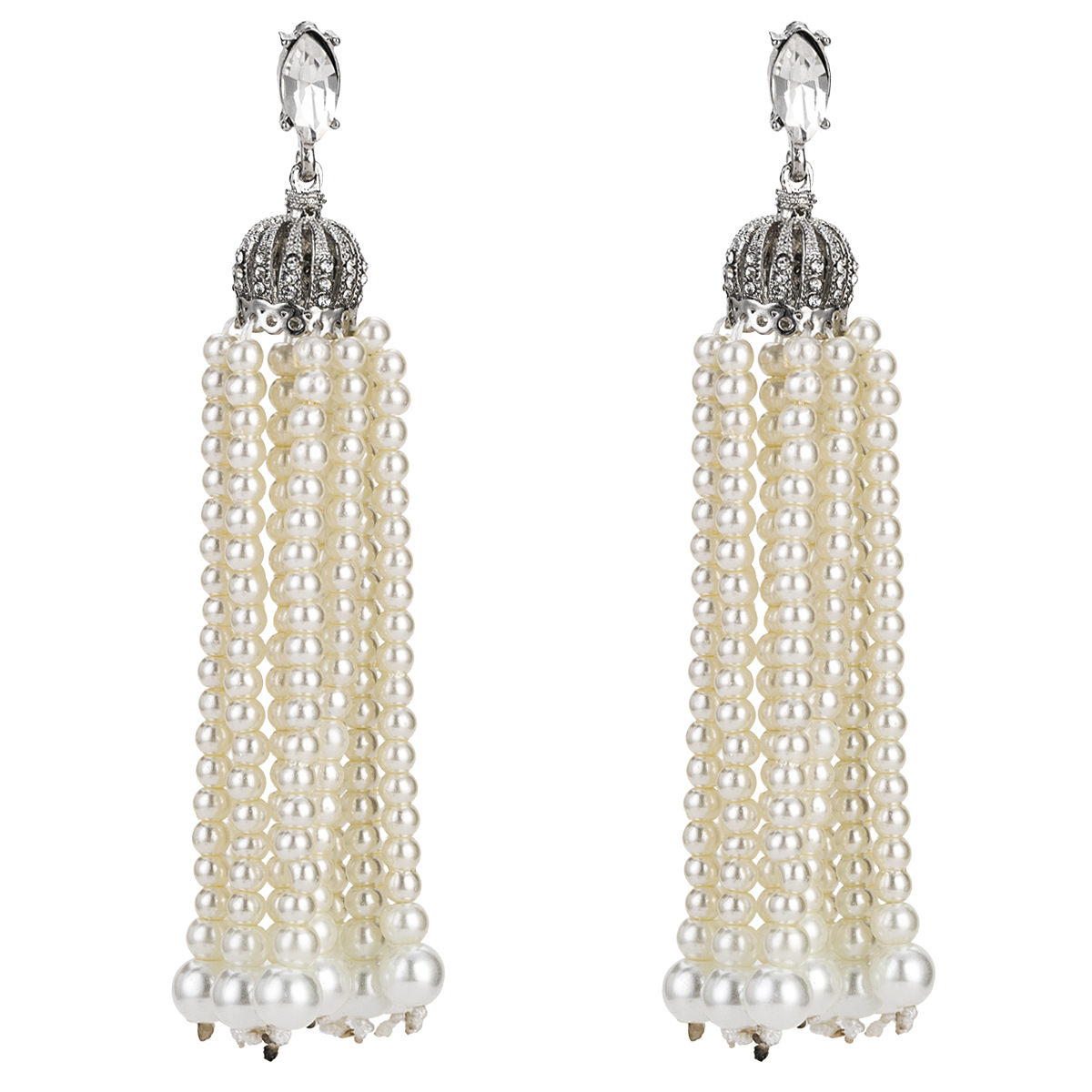 Europe and the United States exaggerated fashion temperament multi-layer tassel earrings imitation pearl crown inlay earrings female manufacturers cross-border supply