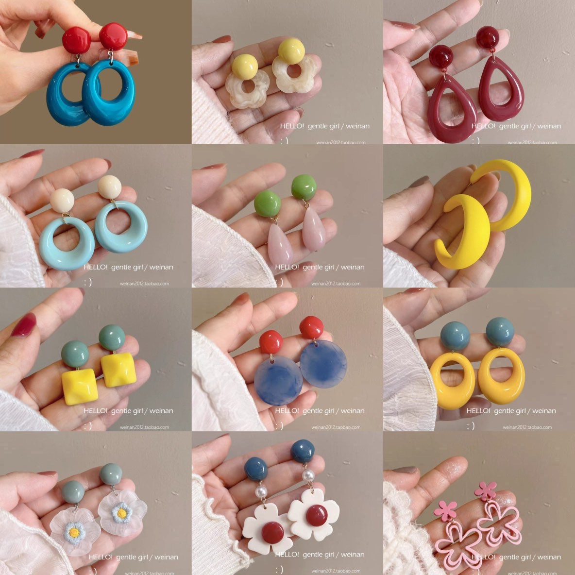 European and American jewelry Amazon popular handmade acetate rattan tassel earrings handmade geometric rattan combination suit