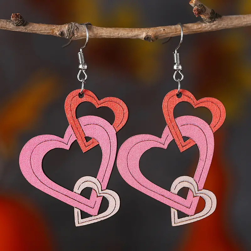 Cross-border new Valentine's Day colorful hollow wood stud earrings lovely chain fashion personalized earrings ear jewelry