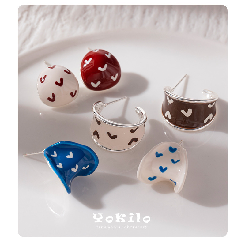 Fashionable Sweet Dopamine Style Earrings with a High-End Feel, Handmade Enamel Heart Minimalist Versatile New Earrings