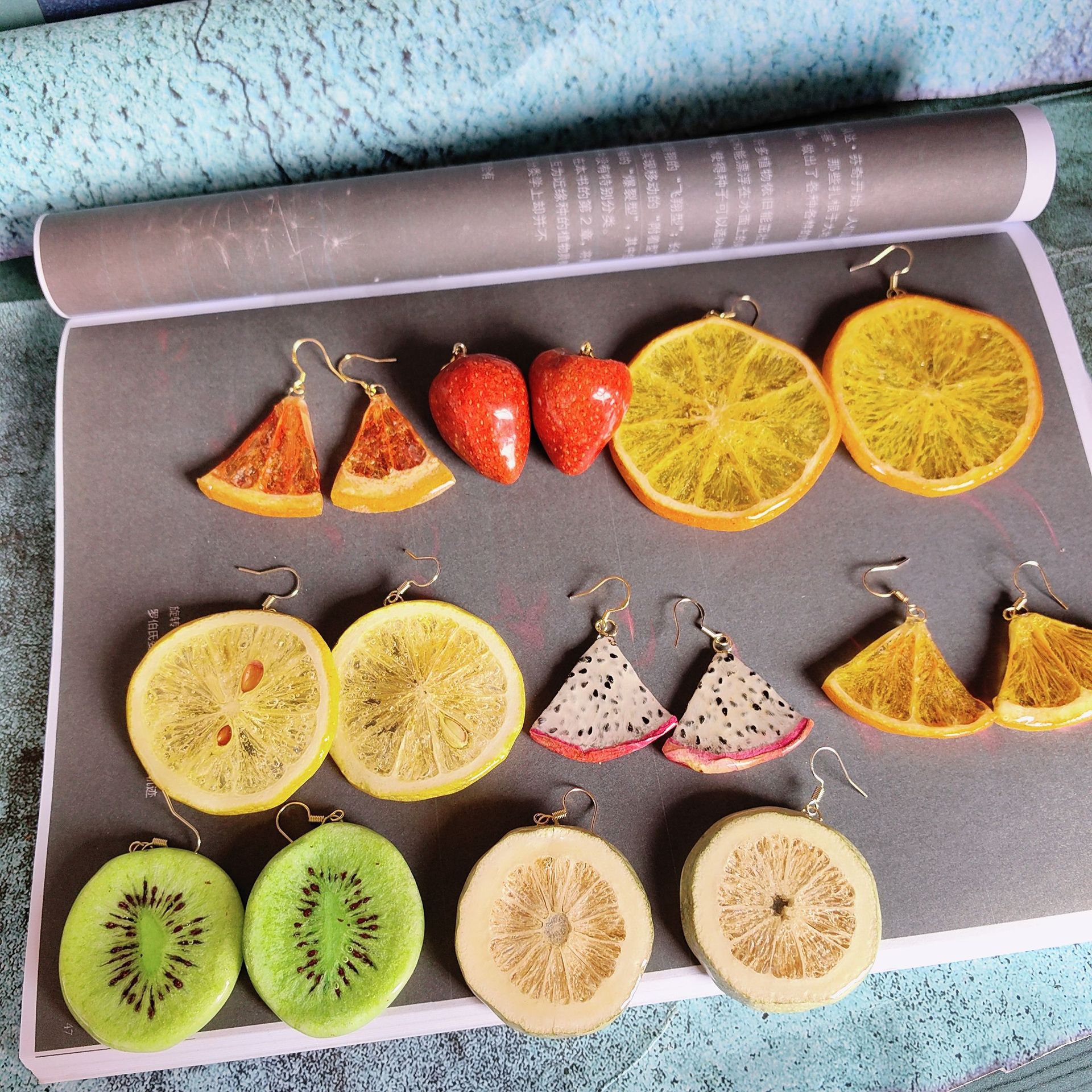 Real Fruit Earrings Lemon Grapefruit Pitaya Real Strawberry Orange Design Handmade Sliced Creative Drop Glue Earrings