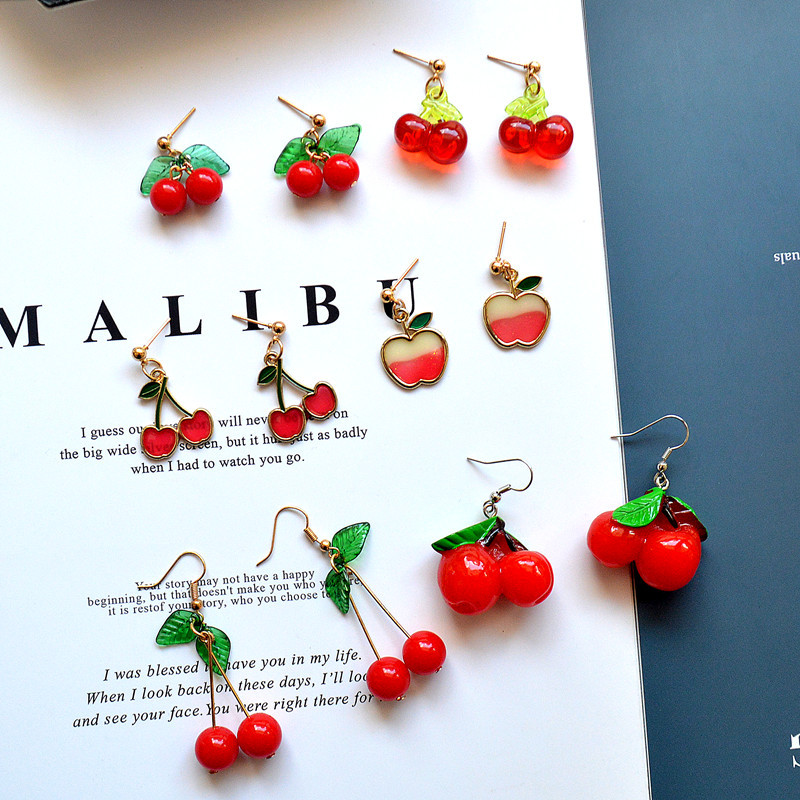 Korean Autumn Trendy Fruit Earrings Fun Drop Earrings Personality Stud Earrings Realistic Red Cherry Earrings for Women