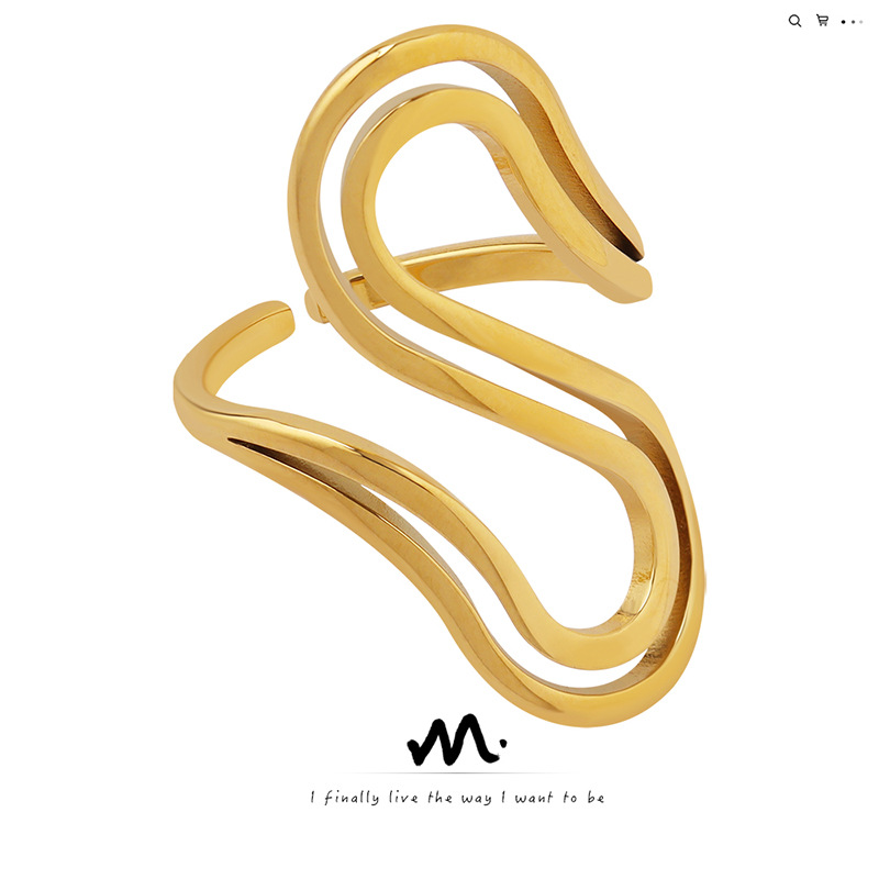 European and American style autumn and winter elegant handmade S-shaped open ring women's titanium steel plated 18K gold fashion ring