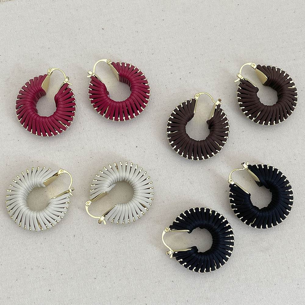 European and American Leather Woven Round Drum-shaped Earrings Women's Vintage Three-dimensional Round Ear Buckle Ear Ring Commuting All-match Ear Jewelry