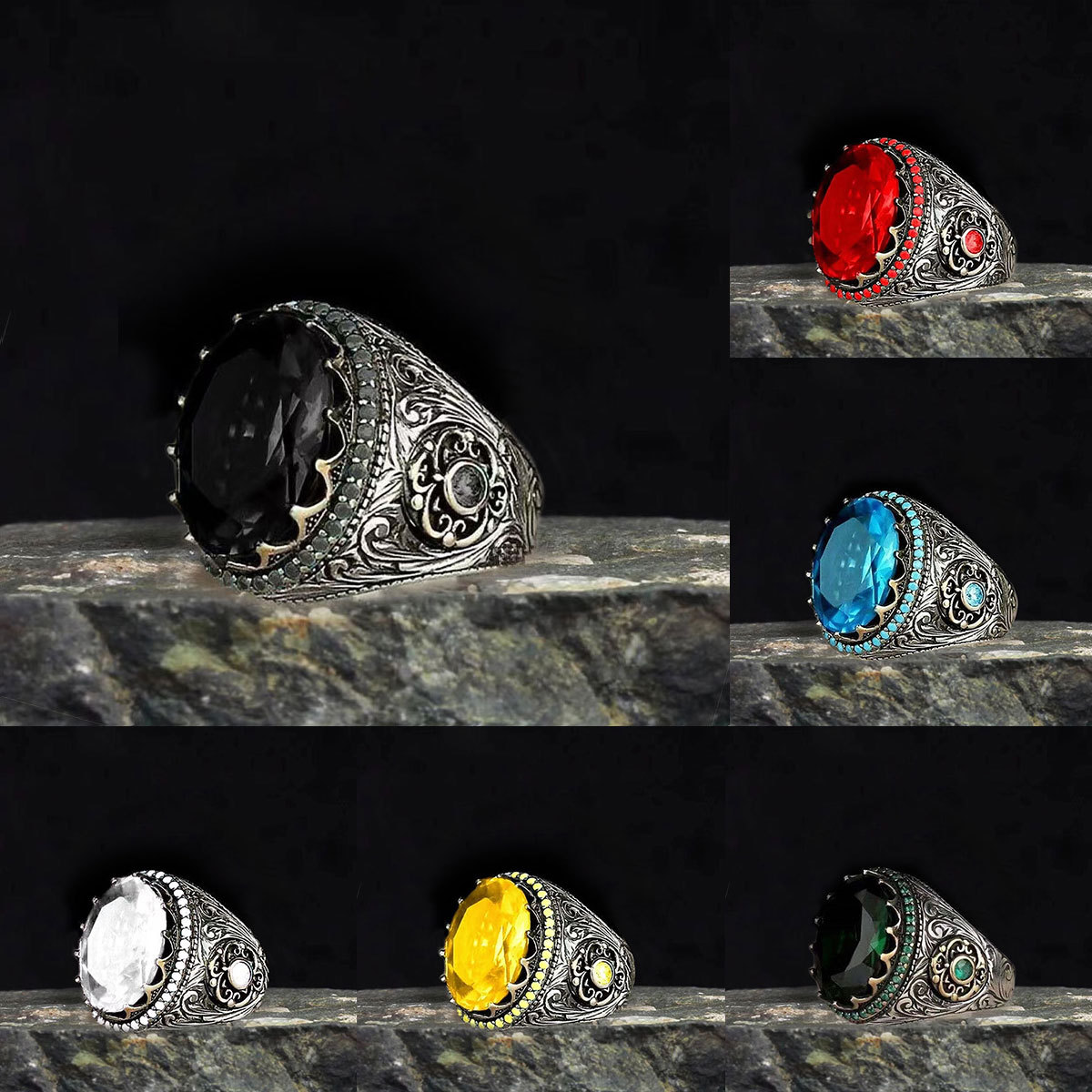 Europe and the United States cross-border super flash diamond gem ring men's hip-hop carving retro pattern ring tide cool jewelry wholesale