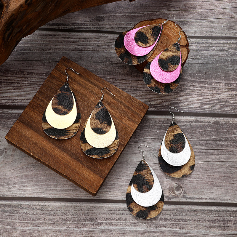 Cross-border retro three-layer water drop leopard leather earrings European and American women AliExpress Amazon