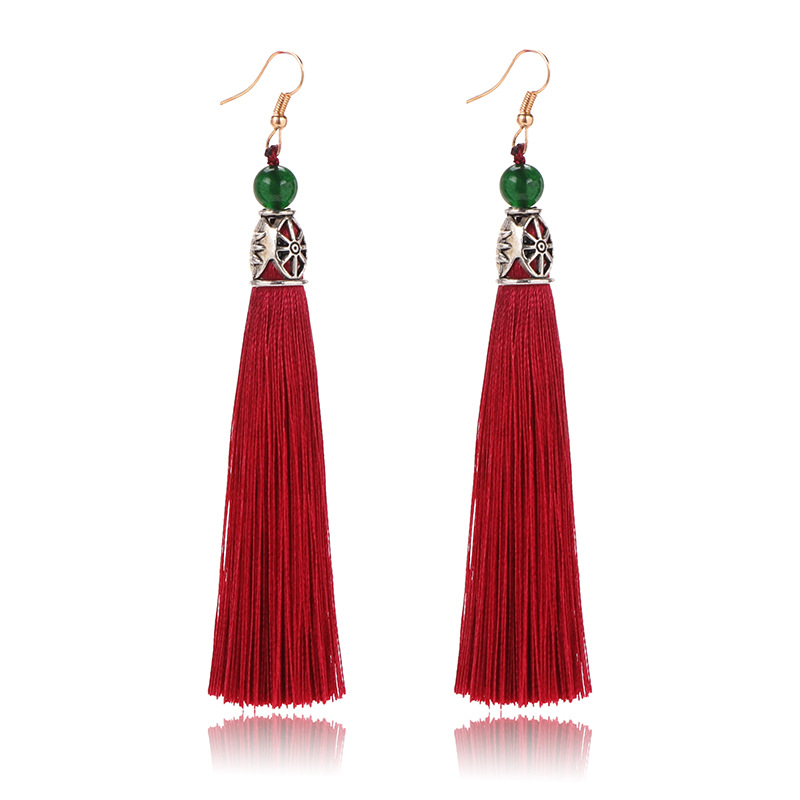 Ancient style tassel earrings long elegant earrings Yunnan vacation travel photography retro style earrings female one-piece delivery