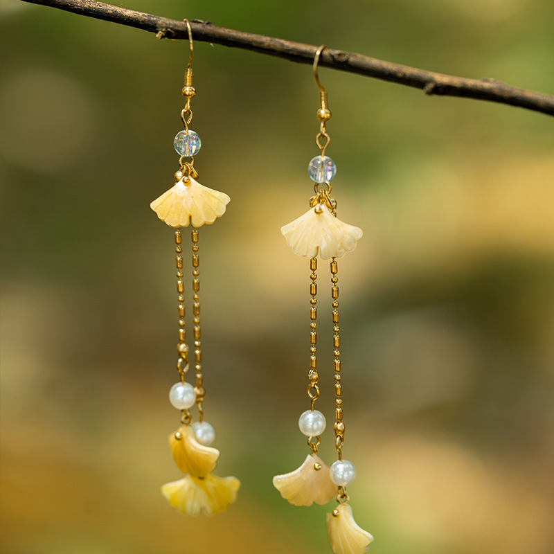 Ginkgo Earrings, Ear Clips, New Chinese Han Dynasty Cheongsam Accessories, Antique Jewelry, High-End National Style Tassel Earrings