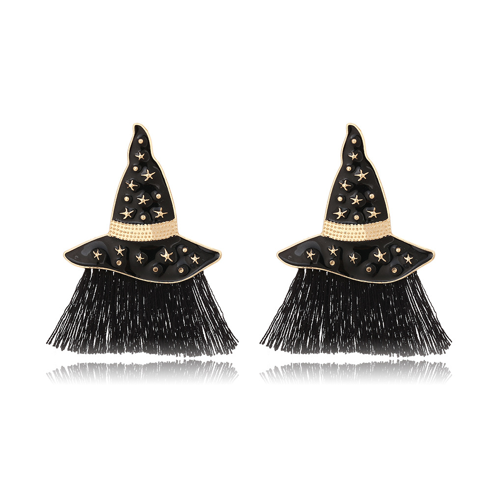 European and American Exaggerated Alloy Halloween Witch Hat Handmade Tassel Earrings Retro Oil Dropping Cartoon Character Modeling Earrings