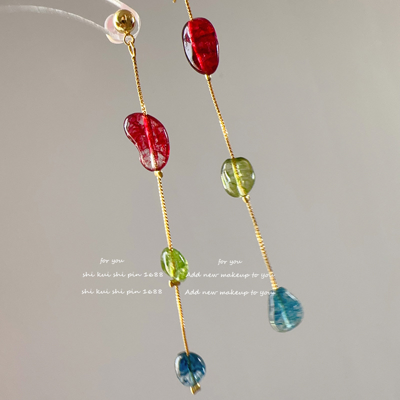 Oriental charm new national style irregular color crystal tassel earrings elegant atmosphere Chinese vintage earrings jewelry