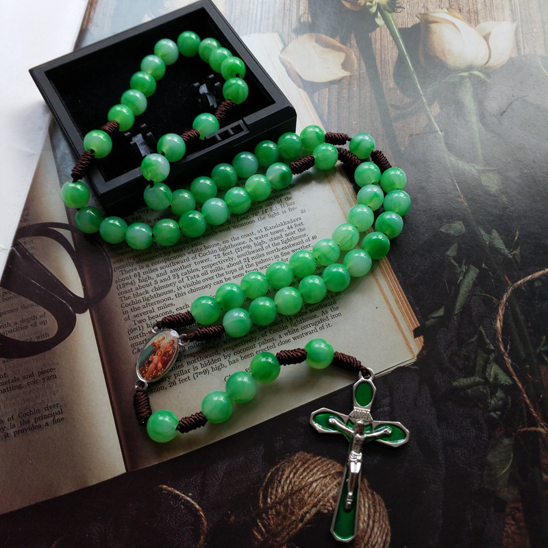 Hand-woven green oil dripping cross necklace 59 beads chain cross-border jewelry long alloy Maria pendant