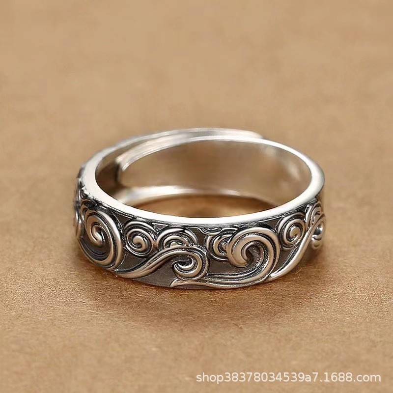 Cross-Border Beautiful Cloud Pattern Thai Silver Retro Tang Grass Ring Couple Silver Jewelry Handmade Gift Open Ring Japanese and Korean Style