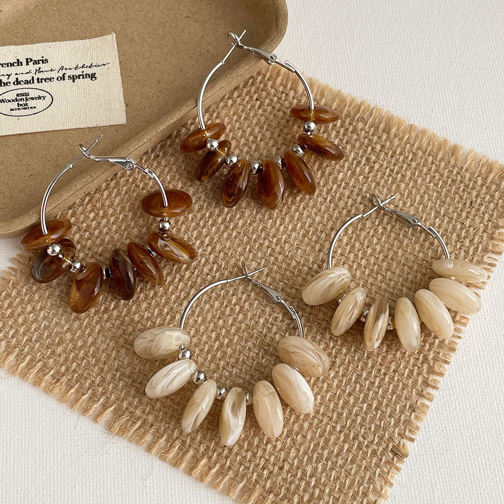 French Retro brown Simi Dye Acrylic Beaded Niche Ear Ring Women's Fashion High-end Sense Temperament Personalized Trendy Earrings