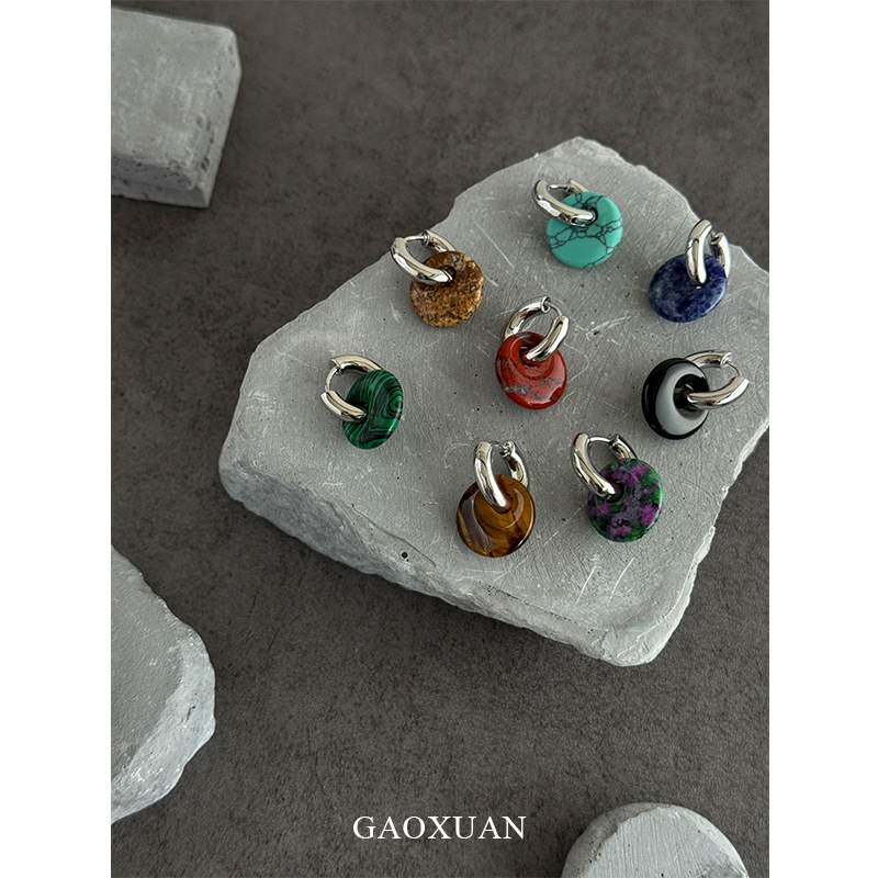 New Chinese Natural Stone Pendant Ear Buckle Light Luxury Niche French Retro Hong Kong Style Lazy Neutral Safe Buckle Earrings