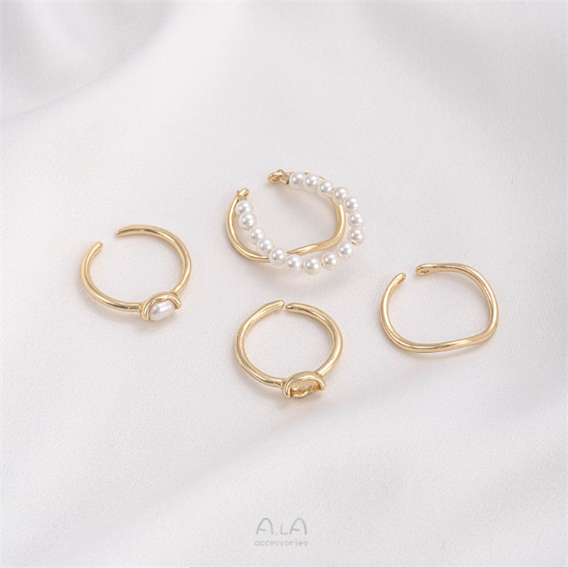 14K gold color retention round women's ring with beads empty holder ingot ring creative diy curved double hole ring