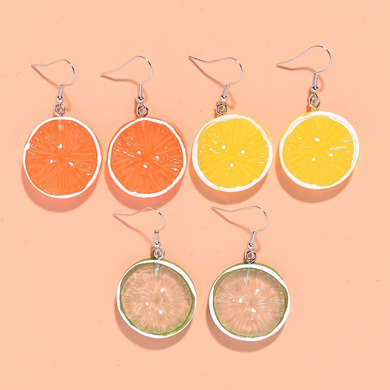 Factory direct small jewelry wholesale European and American personality fun resin earrings strange simulation Orange Lemon Slice Earrings