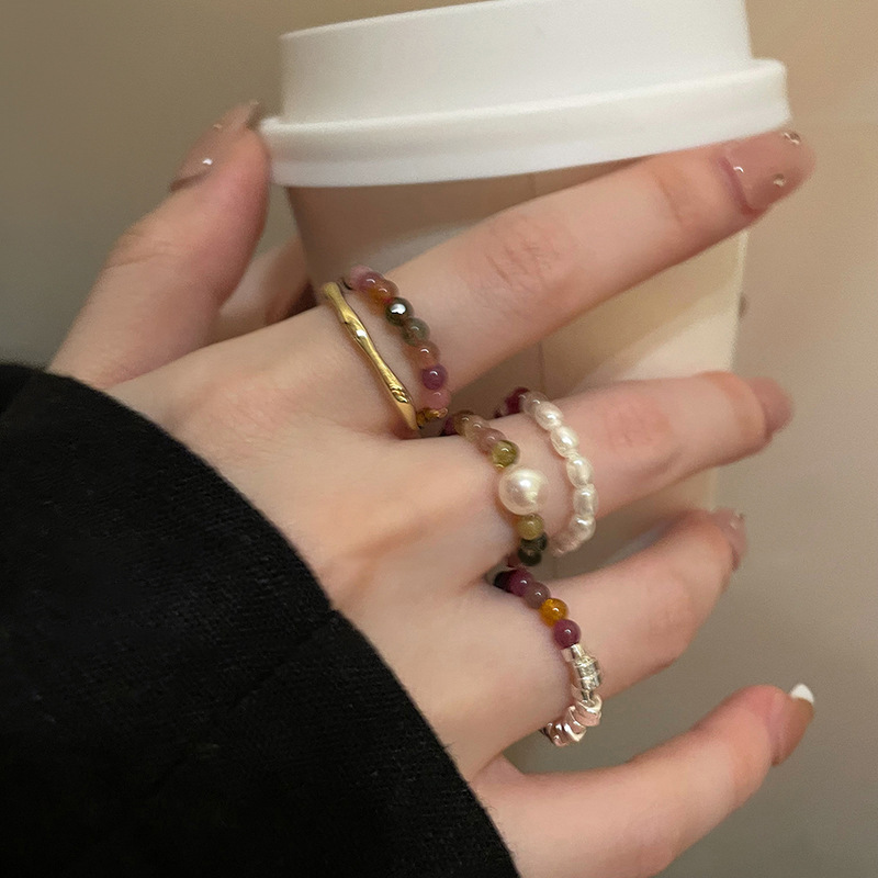 Tourmaline Pearl Design Sense Ring Women's Light Luxury Vintage Niche Design Finger Ring High-grade Beaded Unique Ring