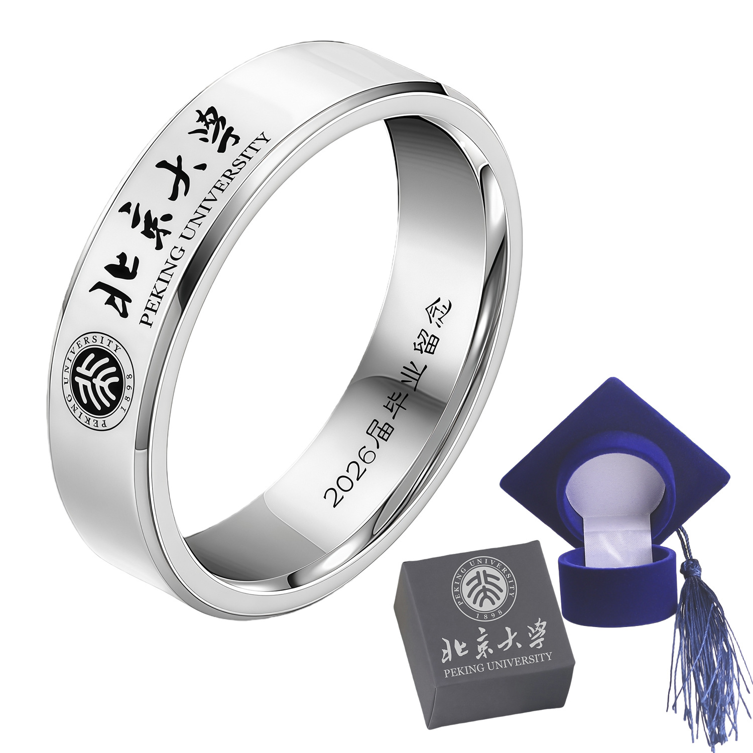 Customized High-End College Graduate Commemorative Ring Titanium Steel Jewelry Student Souvenir Gift Bachelor's Hat Gift Box Engraving
