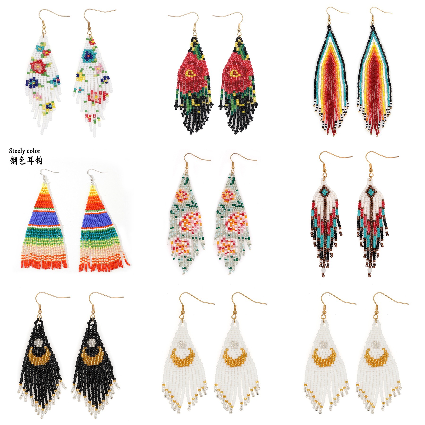 Women's Rice Bead Braided Earrings for Women, Mixed Color Niche Accessible Luxury High-End Earrings, European and American Tassel Earrings Manufacturer Wholesale