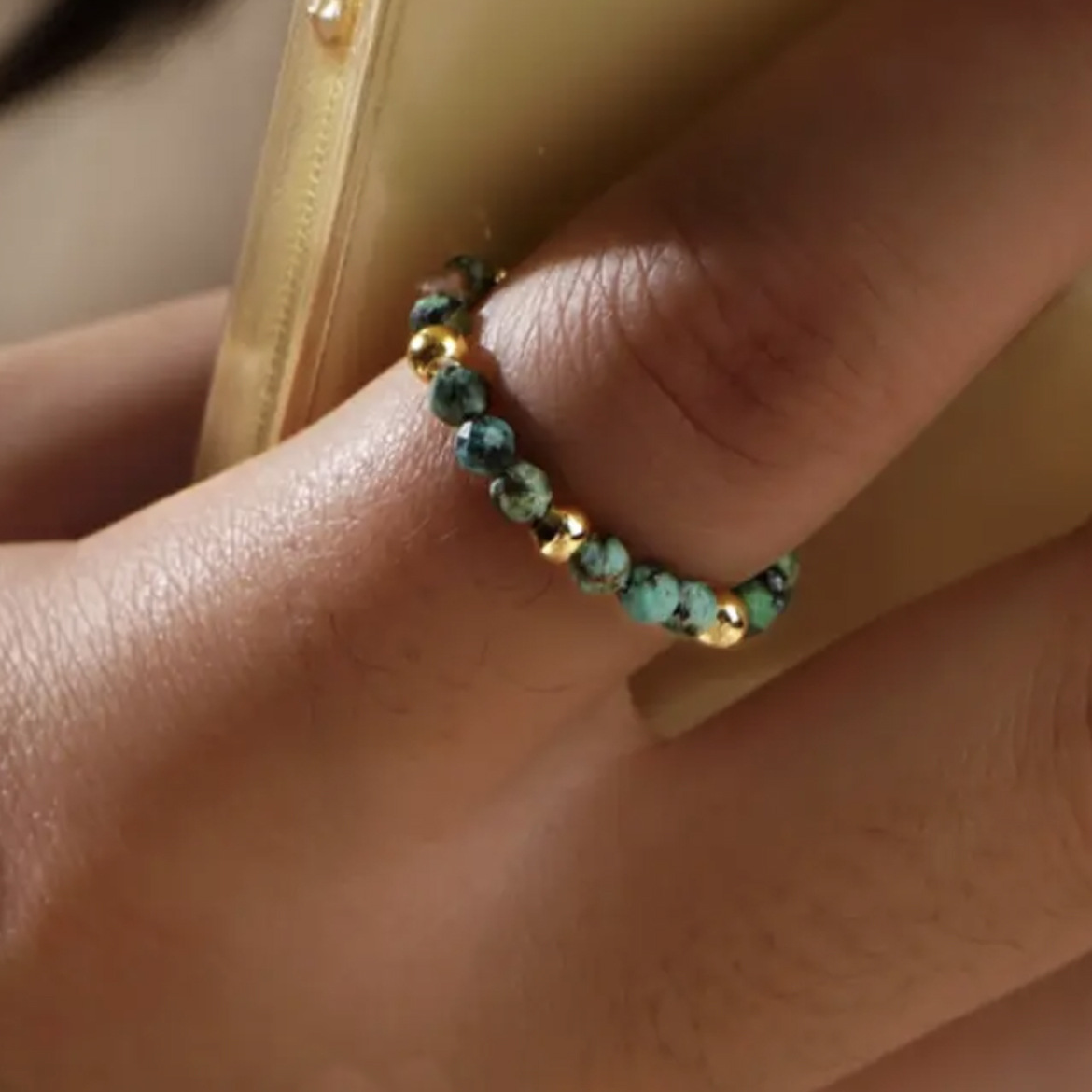 Vacation Beach Natural Stone Ring for Women, Simple Mini Beads, Tiger Eye Stone, Amethyst, Elastic Cord, Adjustable Size