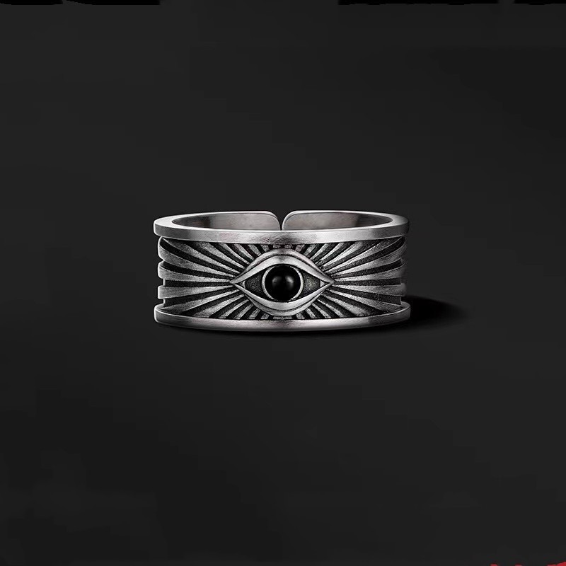 Welcome Open Retro Thai Silver Eye of God Ring Men's High Sense Original Design Open Index Finger Ring for Boys