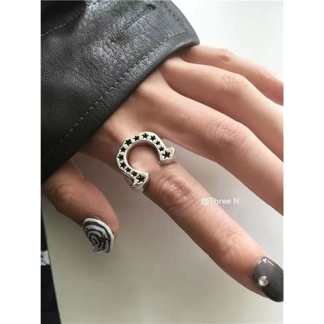 ThreeN heavy industry homemade Big u star ring niche design index finger ring retro distressed niche design sense ring