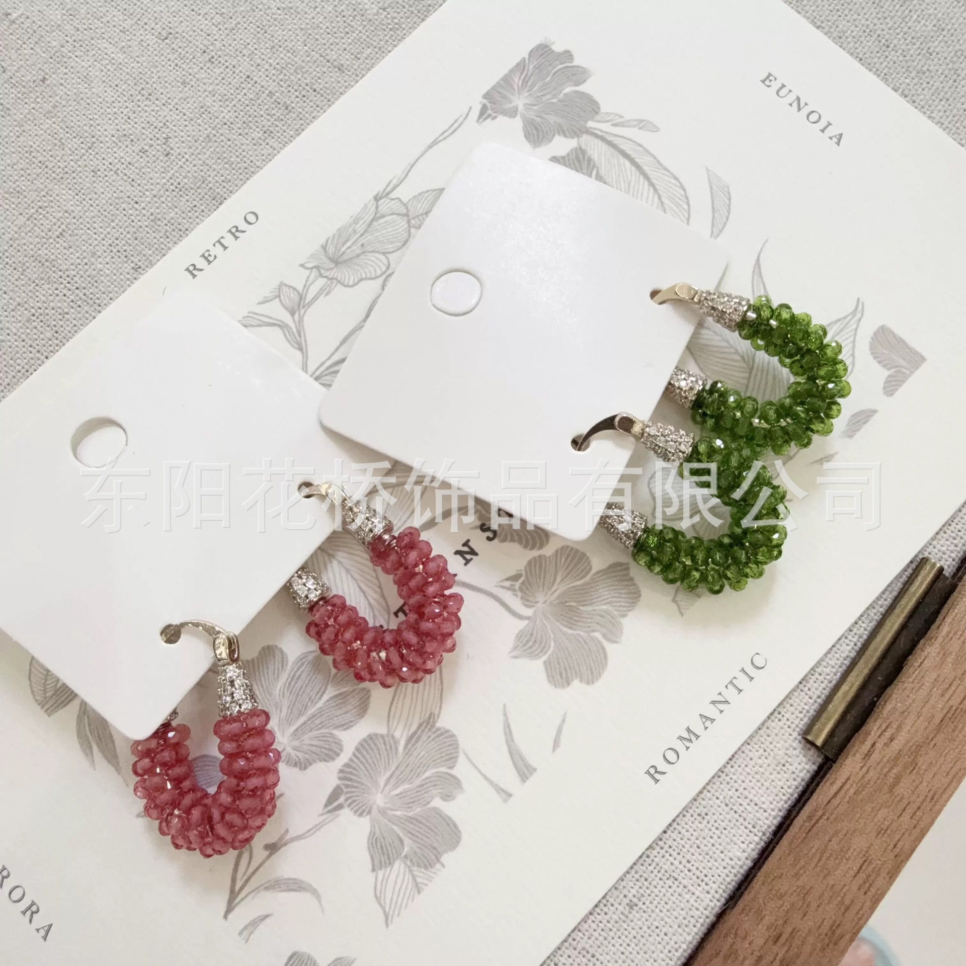 Huajiao Jewelry's New Style of White and Colorful Crystal Earrings, Versatile Summer Earrings with Niche Design