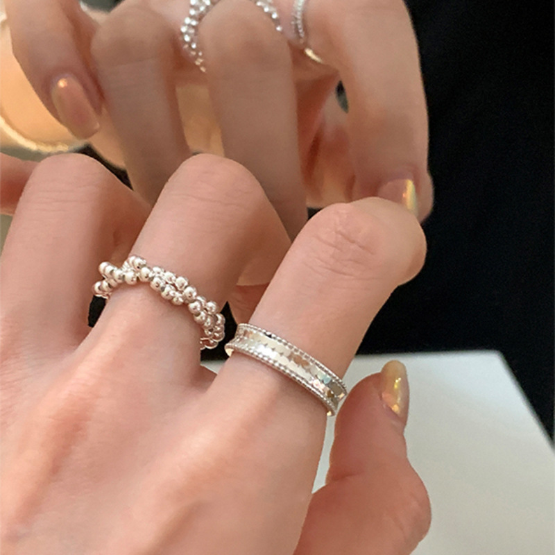 Korean Style Simple Niche Design Beaded Elastic Ring for Women, Cool Style, Versatile Ins High-End Index Finger Ring