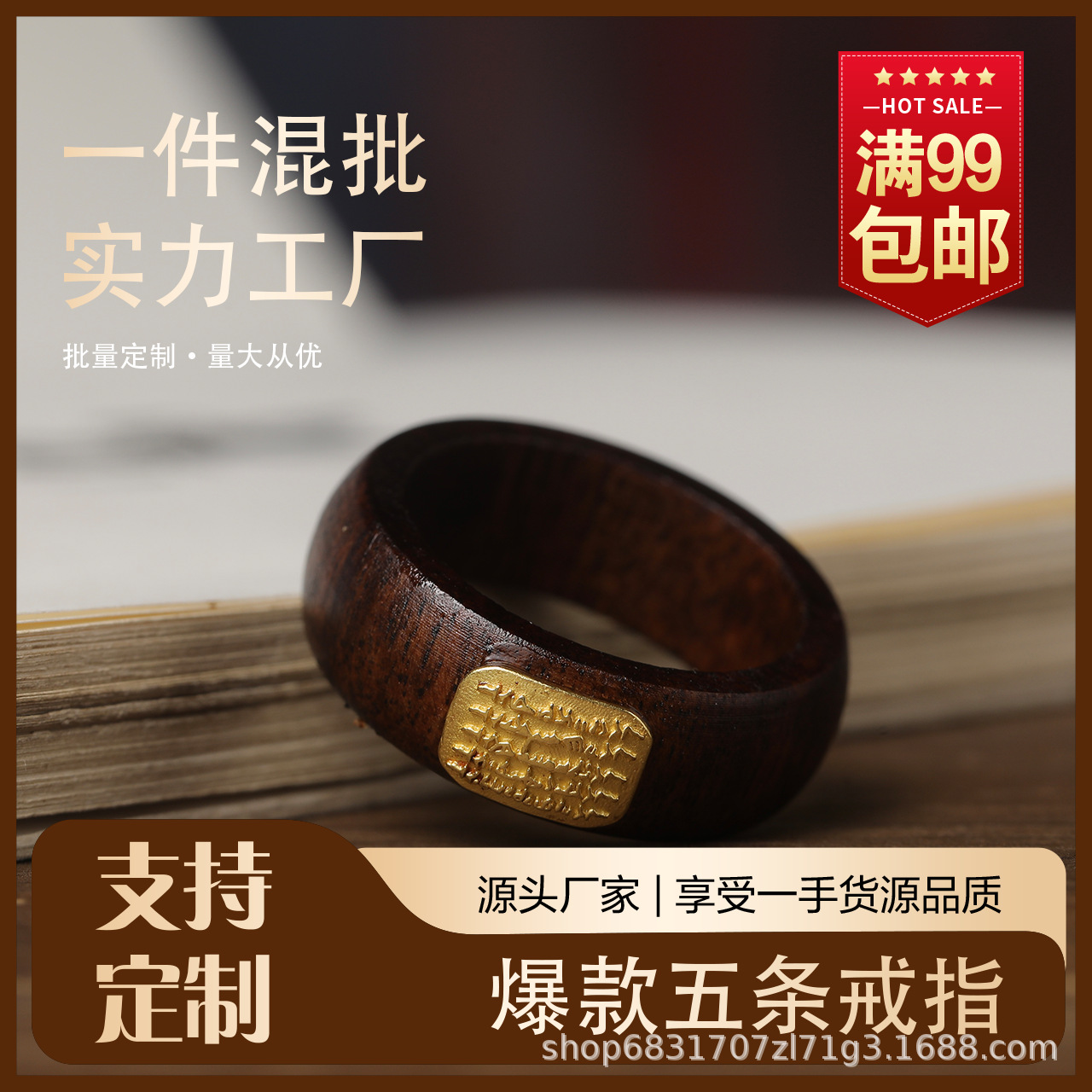 Factory direct natural agarwood carving five verses straight cut ring Wen play wholesale original bracelet running ring accessories