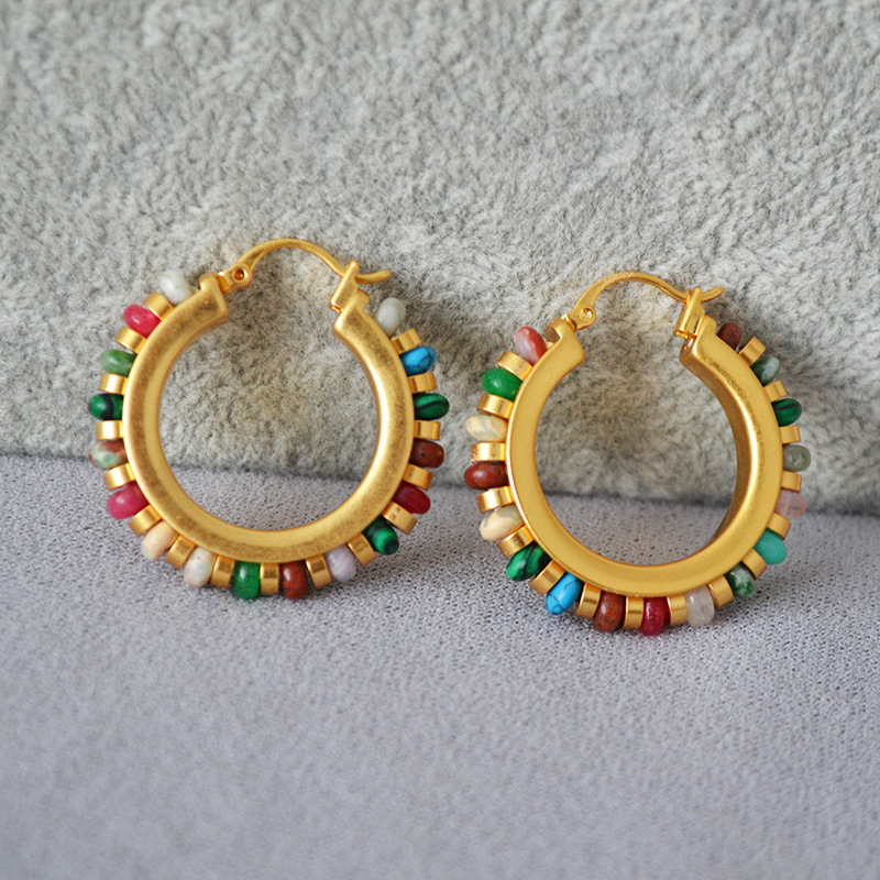 European and American Niche Retro Bohemian Holiday Style Color Real Stone Beaded Personality Fashion Elegant Earrings Earrings for Women