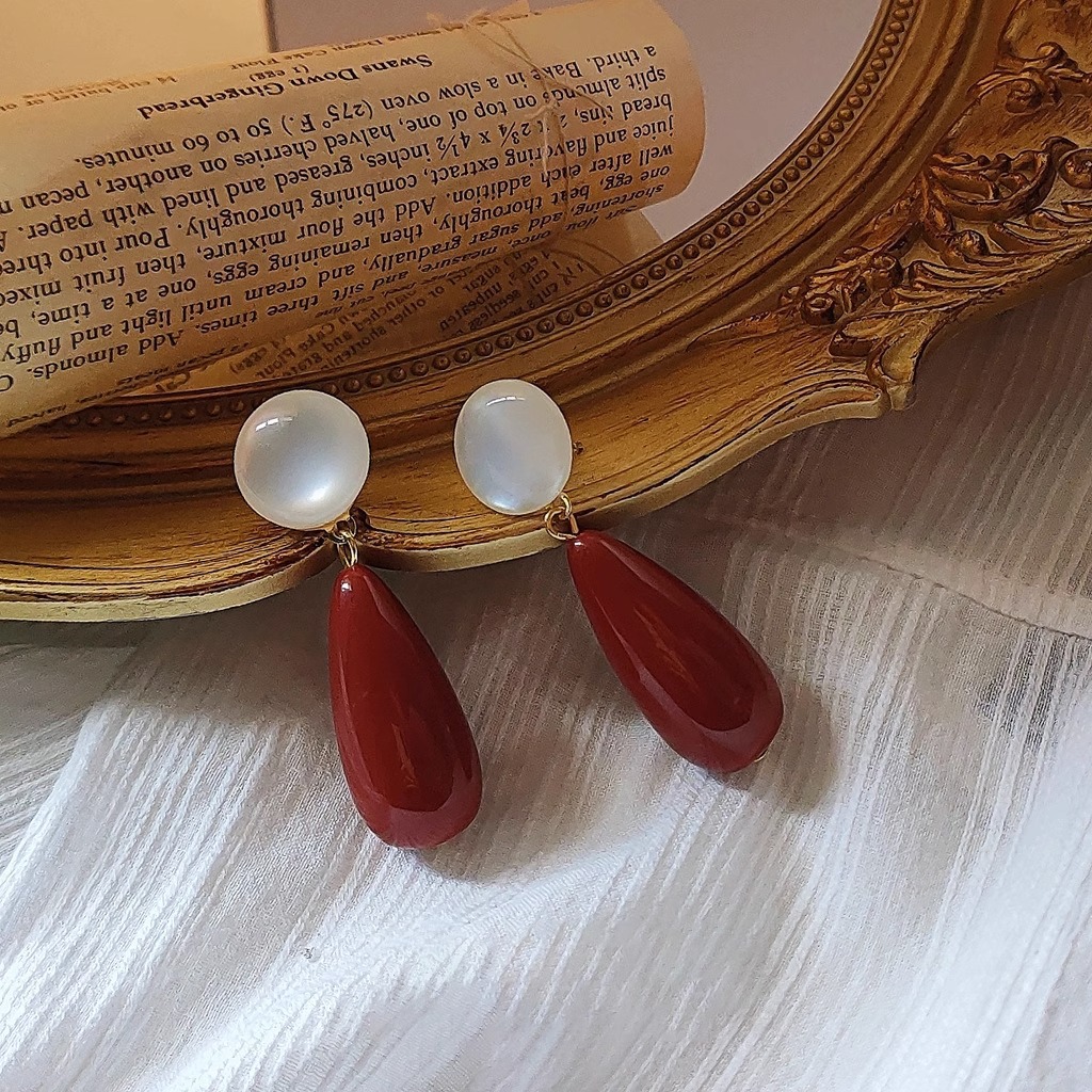 Hong Kong style retro drop-shaped earrings fashionable elegant all-match earrings French niche light luxury design earless ear clip