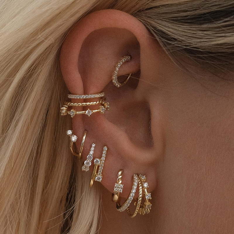 Cross-Border Exclusive Supply of Trendy European and American Style Everyday Versatile Geometric-Shaped Luxury Zircon Earring Sets Wholesale