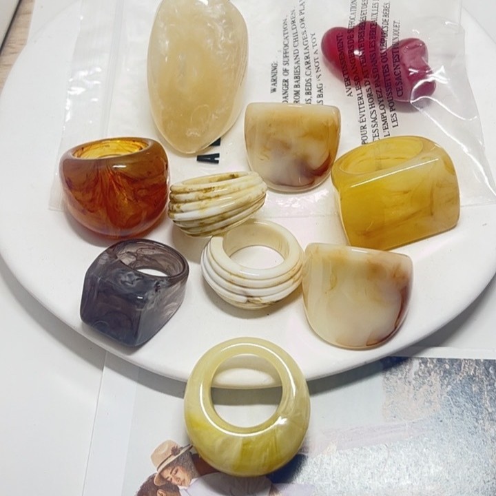 Korean Niche Geometric Colorful Resin Ring for Women Trendy Unique Fashion Versatile Irregular Ring